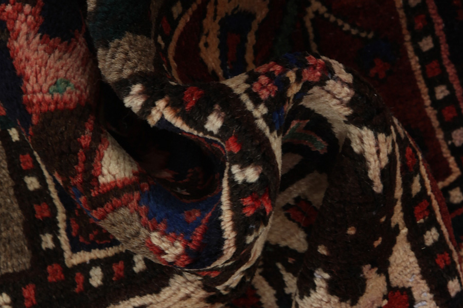 Abrash: Auf Grund des unterschiedlichen Wollfettgehalts und der unterschiedlichen Salzmenge während des Färbungsprozesses, hat die Wolle eine unterschiedliche Farbaufsaugfähigkeit. Vor dem Weben ist es nicht so sichtbar. Aber beim Weben entstehen Reihen mit unterschiedlichen Farbabstufungen der gleichen Farbe. Dies heißt Abrash und verdeutlicht die Natürlichkeit und die Originalität der Wolle, die mit keinen chemischen Mitteln behandelt wurde. Beispiele