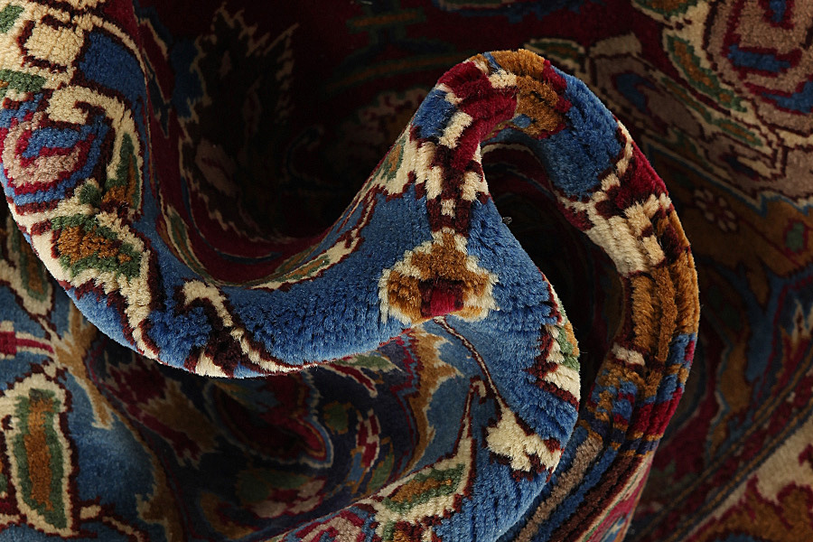 Mashad ist bekannt als die Stadt des Dichters Ferdowsi, der „Shahnameh“ (Das Buch der Könige), das als nationales Epos Irans angesehen wird, geschrieben hat. Sie ist auch namhaft für ihre ausgezeichnete Wollqualität. Die alten Mashad Teppiche waren von hervorragender Qualität und dünn. Über einen Zeitraum hinweg, entsprach die Qualität wegen der hohen Fertigungskosten nicht den Ansprüchen der Käufer und die Nachfrage ging stark zurück. Dies war ungefähr bis Mitte der 50er Jahre der Fall, als dann die Qualität angefangen hat sich bedeutend zu verbessern. Ihre Teppiche haben schrittweise begonnen, mit Kunstwerken zu gleichen, auf denen wunderschöne, geschmackvolle, zarte und detaillierte Muster zu sehen sind. Eine große Vielfallt an Blumen, „Mir I Botah“, schöne Medaillons und Bordüren mit Girlanden zieren nun die Mashad-Teppiche. Die Farben sind fast immer pflanzlich. In Horashan gibt es viele Färberröte-Pflanzen, eine Pflanzenart, aus der ein sehr lieblicher Rotton genommen wird (Krapprot). Indigoblau ist die zweitwichtigste Farbe, die verwendet wird. Die Knoten, die sie benutzen, sind Senneh (Persische Knoten) und Ghiordes (Türkische Knoten). Die Mashad-Teppiche mit dem Beinamen Turkbaf, bei denen Ghiordes Knoten verwendet werden verfügen über eine hohe Qualität und Schönheit.