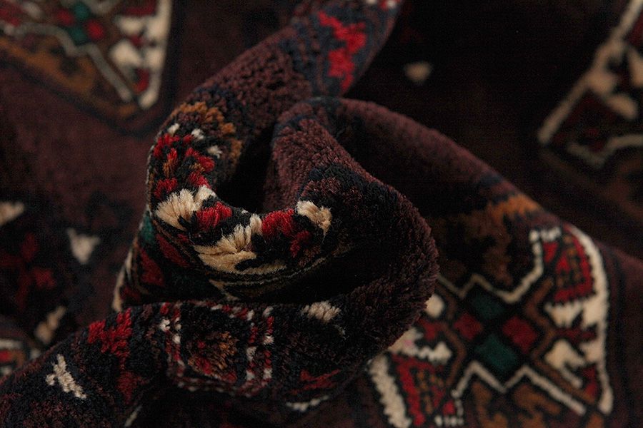 Abrash: Auf Grund des unterschiedlichen Wollfettgehalts und der unterschiedlichen Salzmenge während des Färbungsprozesses, hat die Wolle eine unterschiedliche Farbaufsaugfähigkeit. Vor dem Weben ist es nicht so sichtbar. Aber beim Weben entstehen Reihen mit unterschiedlichen Farbabstufungen der gleichen Farbe. Dies heißt Abrash und verdeutlicht die Natürlichkeit und die Originalität der Wolle, die mit keinen chemischen Mitteln behandelt wurde. Beispiele