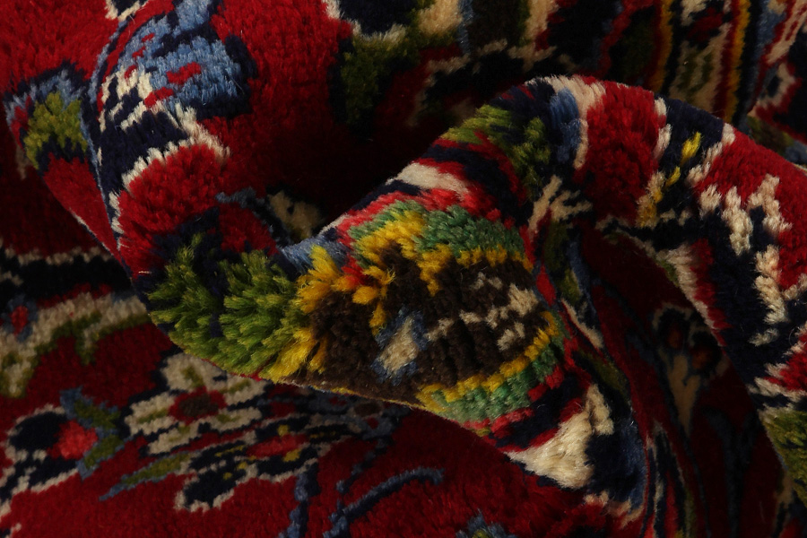 Abrash: Auf Grund des unterschiedlichen Wollfettgehalts und der unterschiedlichen Salzmenge während des Färbungsprozesses, hat die Wolle eine unterschiedliche Farbaufsaugfähigkeit. Vor dem Weben ist es nicht so sichtbar. Aber beim Weben entstehen Reihen mit unterschiedlichen Farbabstufungen der gleichen Farbe. Dies heißt Abrash und verdeutlicht die Natürlichkeit und die Originalität der Wolle, die mit keinen chemischen Mitteln behandelt wurde. Beispiele