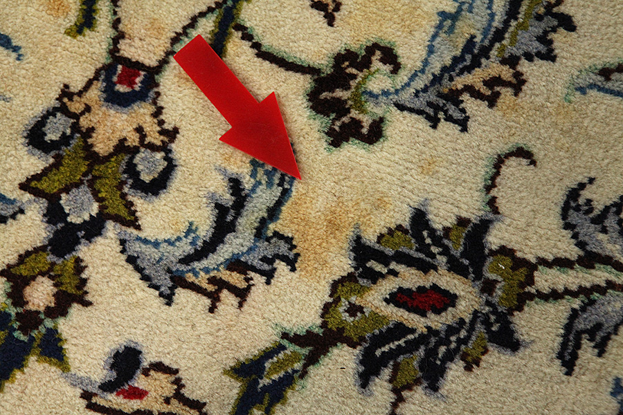 • Wichtige Bemerkung: Die Farbe des Teppichs ist an einer kleinen Stelle des Flors verbleicht.