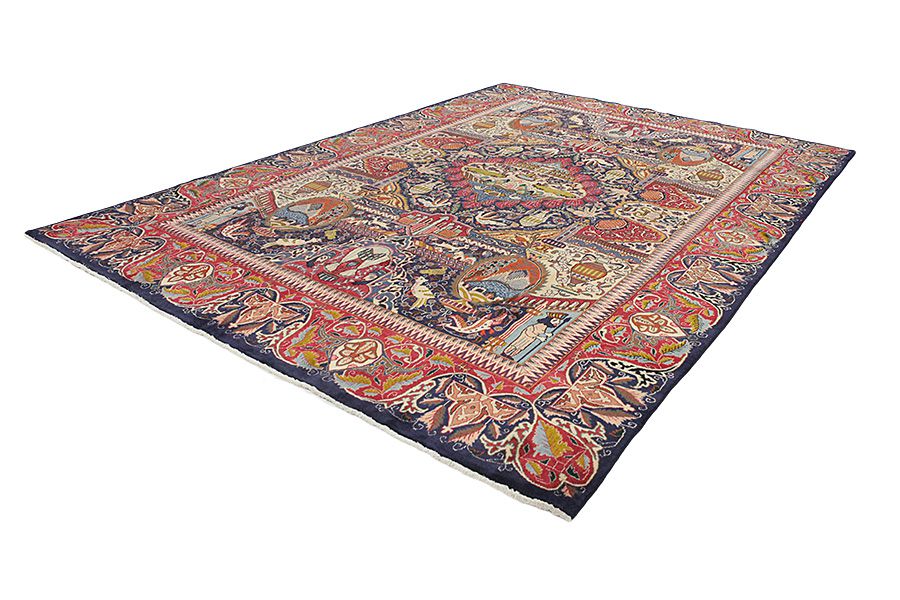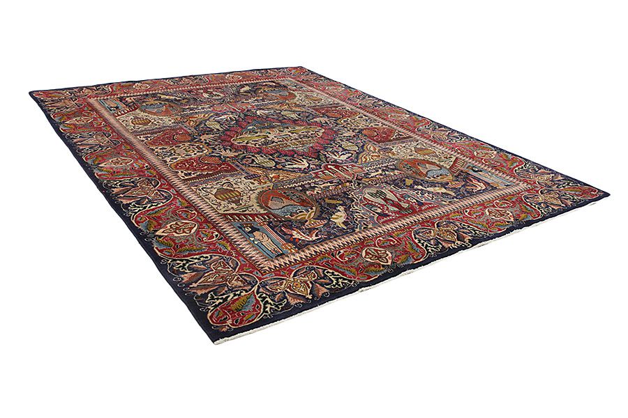 Die Stadt Kashmar liegt in der Provinz Khorasan, südwestlich der Stadt Mashad in Ost-Iran. Sie hat eine bedeutsame historische Vergangenheit und ihr alter Name ist Torshiz. Dort werden seit Jahrhunderten hervorragende, hochwertige Teppiche gefertigt. Diese Teppiche sind dicht und aus dünner weicher Wolle, in hübschen hellblauen Tönen, die einen guten Kontrast zu den Creme- und Elfenbeinfarbtönen bilden. Für die neueren Teppiche wird ein zartes Grün, Rot und Braun verwendet. Typisch für Kashmar Teppiche sind die großen Maße und ihre einzigartigen Muster, die Gemälden mit Bäumen, Blumen und Minarettenkuppeln gleichen. Außerdem sind Darstellungen abgebildet, die historische Ereignisse erzählen (wie z.B. ein wichtiges Ereignis aus der Geschichte Persiens oder einer bekannten historischen Person, oder die Geschichte eines ehrenhaften persischen Königs). In Kashmar werden hübsche, kunstvolle Meisterwerke mit Farbharmonie und mit komplexen, detailreichen Mustern gefertigt, die die Liebe der Perser für die Schönheit und für die Kunst zeigen. Die Kashmar-Teppiche sind robust und je älter sie werden, desto schöner werden sie.