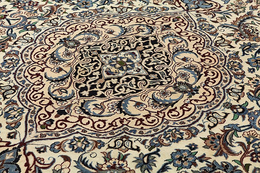 Die hohe Knotendichte und die ausgezeichnete Qualität ihrer Materialien (Wolle und Seide) machen die Nain Teppiche zu Teppichen von hoher Qualität. Bei den meisten Teppichen wird Baumwolle für die Kette verwendet. Die Kette besteht aus einer bestimmten Anzahl an Fäden, die als „La“ bezeichnet werden. Die Nain 9la Teppiche werden hauptsächlich in der Gegend Khorasan. Es handelt sich nämlich um die Kashmar und Mashhad Teppiche.