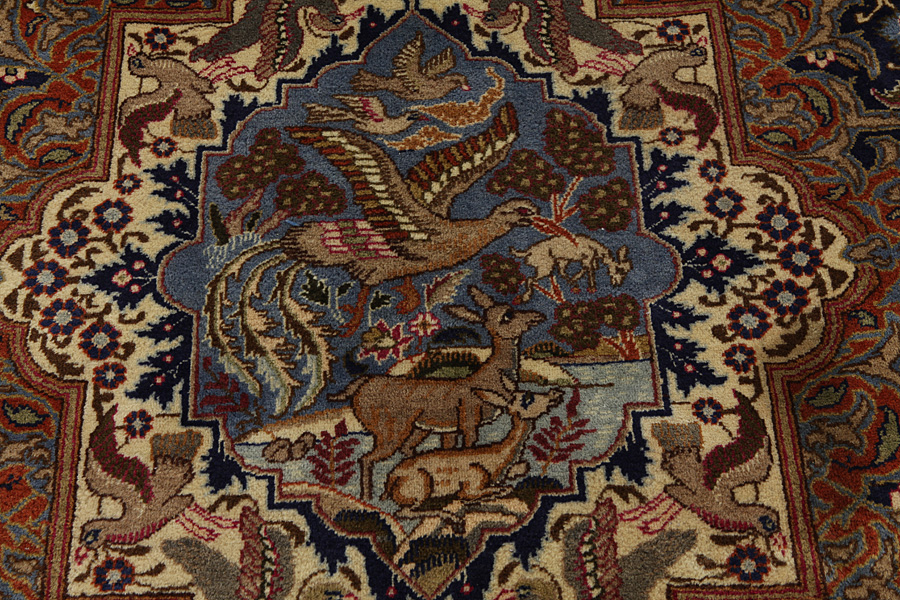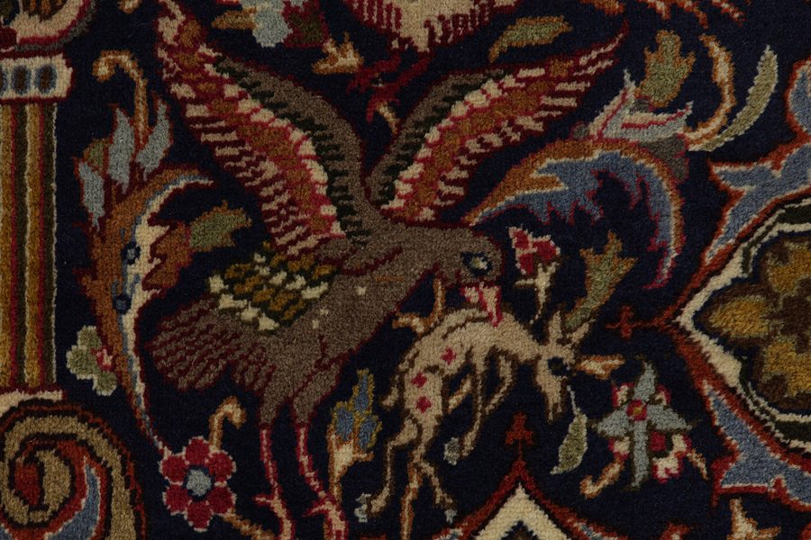 Die Stadt Kashmar liegt in der Provinz Khorasan, südwestlich der Stadt Mashad in Ost-Iran. Sie hat eine bedeutsame historische Vergangenheit und ihr alter Name ist Torshiz. Dort werden seit Jahrhunderten hervorragende, hochwertige Teppiche gefertigt. Diese Teppiche sind dicht und aus dünner weicher Wolle, in hübschen hellblauen Tönen, die einen guten Kontrast zu den Creme- und Elfenbeinfarbtönen bilden. Für die neueren Teppiche wird ein zartes Grün, Rot und Braun verwendet. Typisch für Kashmar Teppiche sind die großen Maße und ihre einzigartigen Muster, die Gemälden mit Bäumen, Blumen und Minarettenkuppeln gleichen. Außerdem sind Darstellungen abgebildet, die historische Ereignisse erzählen (wie z.B. ein wichtiges Ereignis aus der Geschichte Persiens oder einer bekannten historischen Person, oder die Geschichte eines ehrenhaften persischen Königs). In Kashmar werden hübsche, kunstvolle Meisterwerke mit Farbharmonie und mit komplexen, detailreichen Mustern gefertigt, die die Liebe der Perser für die Schönheit und für die Kunst zeigen. Die Kashmar-Teppiche sind robust und je älter sie werden, desto schöner werden sie.