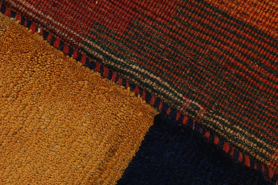 Abrash: Auf Grund des unterschiedlichen Wollfettgehalts und der unterschiedlichen Salzmenge während des Färbungsprozesses, hat die Wolle eine unterschiedliche Farbaufsaugfähigkeit. Vor dem Weben ist es nicht so sichtbar. Aber beim Weben entstehen Reihen mit unterschiedlichen Farbabstufungen der gleichen Farbe. Dies heißt Abrash und verdeutlicht die Natürlichkeit und die Originalität der Wolle, die mit keinen chemischen Mitteln behandelt wurde. Beispiele