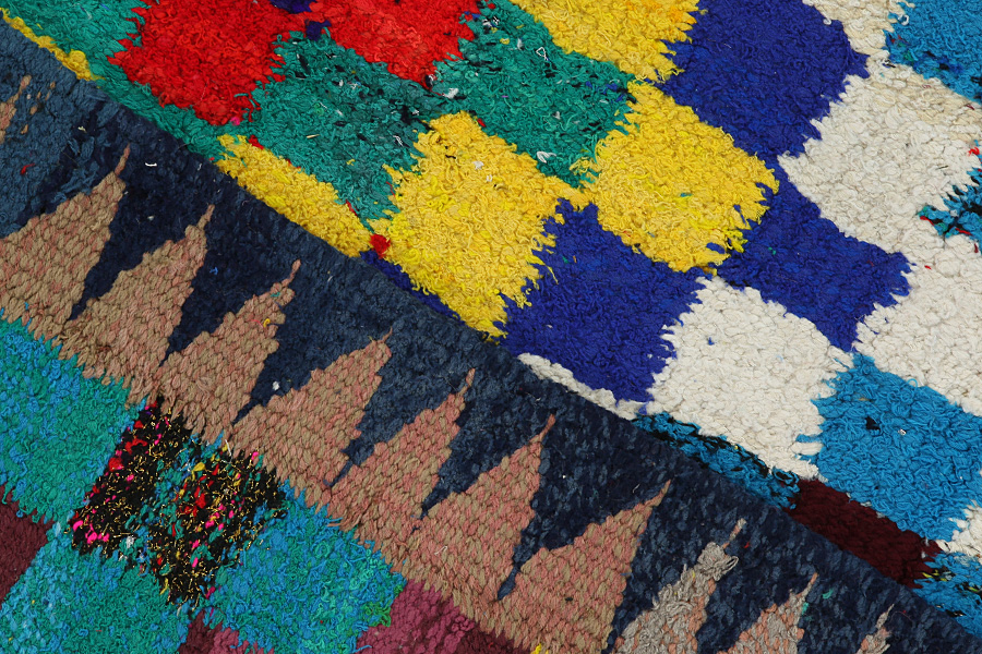 Abrash: Auf Grund des unterschiedlichen Wollfettgehalts und der unterschiedlichen Salzmenge während des Färbungsprozesses, hat die Wolle eine unterschiedliche Farbaufsaugfähigkeit. Vor dem Weben ist es nicht so sichtbar. Aber beim Weben entstehen Reihen mit unterschiedlichen Farbabstufungen der gleichen Farbe. Dies heißt Abrash und verdeutlicht die Natürlichkeit und die Originalität der Wolle, die mit keinen chemischen Mitteln behandelt wurde. Beispiele