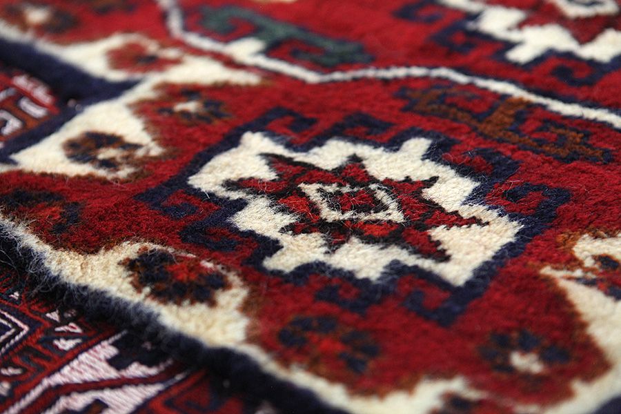 Abrash: Auf Grund des unterschiedlichen Wollfettgehalts und der unterschiedlichen Salzmenge während des Färbungsprozesses, hat die Wolle eine unterschiedliche Farbaufsaugfähigkeit. Vor dem Weben ist es nicht so sichtbar. Aber beim Weben entstehen Reihen mit unterschiedlichen Farbabstufungen der gleichen Farbe. Dies heißt Abrash und verdeutlicht die Natürlichkeit und die Originalität der Wolle, die mit keinen chemischen Mitteln behandelt wurde. Beispiele