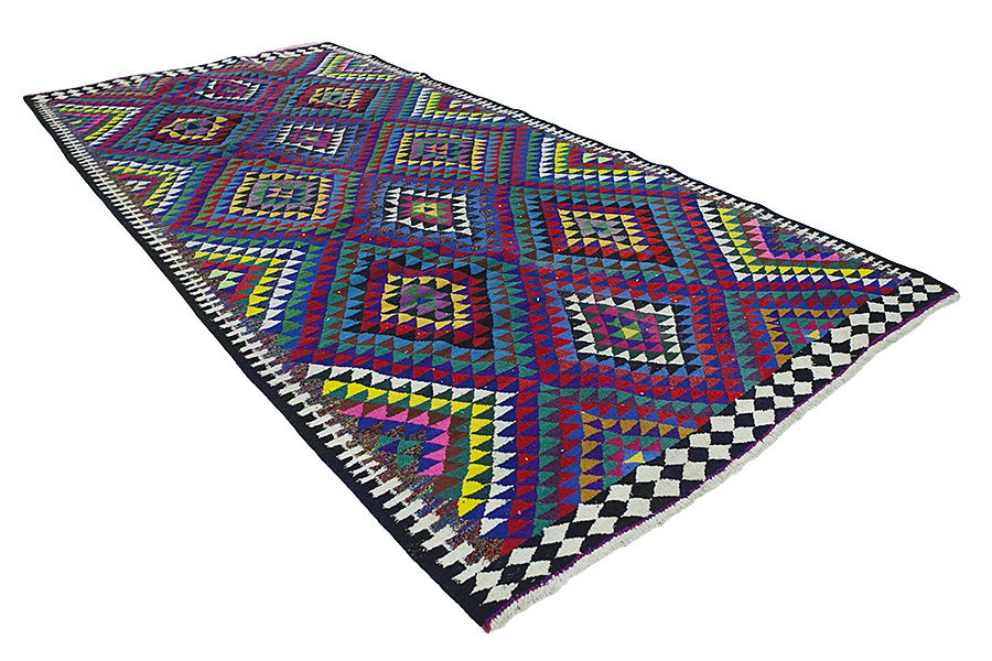 Dies ist ein spezieller orientalischer Webteppich ohne Flor, der dem Teppich mit Flor vorrausging. Sie werden vor allem von Nomaden in Persien, Afghanistan, der Türkei und verschiedenen Gebieten im Kaukasus hergestellt. Es handelt sich hier um Webarbeiten von nicht besonders großen Maßen, mit simpler Webart, ohne Flor, die typische geometrische Muster und üppige Farbkombinationen haben. Für die Fertigung der Teppiche werden natürliche Materialien verwendet, wie Wolle und manchmal wird für leichtere und dünnere Kelims auch Seide benutzt. Die Farben der Fäden werden aus Pflanzen und Metallen gewonnen, die zu den natürlichen, hübschen Farbtönen beitragen. Die langjährige Tradition der Kelims gibt es schon seit Jahrhunderten bei den Nomaden Zentralasiens. Sie sind vielseitig verwendbar und können als Teppiche auf dem Boden, als Möbelbedeckung oder als Wanddekoration verwendet werden. Der Name Kelim stammt von dem persischen Wort Gelim. Die Kurden nennen sie Berr-Teppiche. Die bekanntesten persischen Kelims sind die Sumakh-. Senneh-, Fars- und die Qashqai-Teppiche. Verschiedene Namen afghanischer Kelims sind Golbariasta, Maimane, Taimani, Maliki und andere. Viele Kelims werden auch an der Grenze zwischen Persien und Afghanistan von Balouch-Nomaden gewebt. Ihre typischen Farben sind dunkle Erdtöne.
