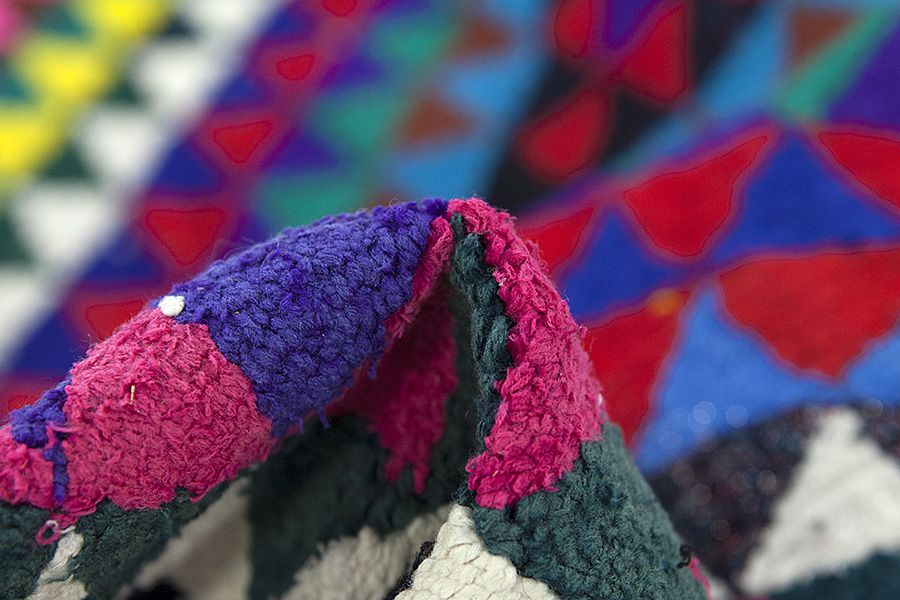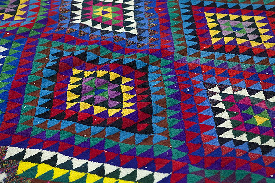 Die Teppichfarben ändern sich je nachdem von welcher Seite er betrachtet wird. Sie können den Teppich auf den folgenden Bildern aus verschiedenen Perspektiven betrachten: