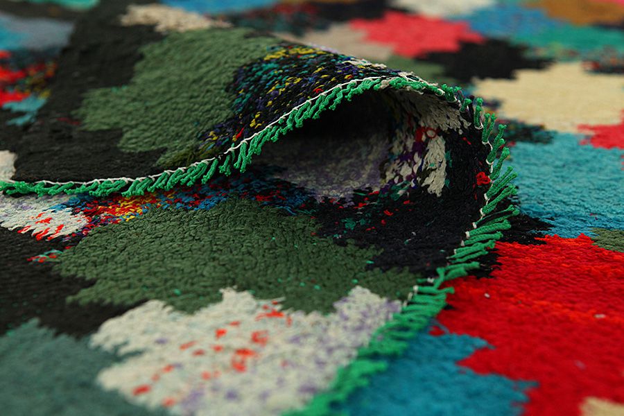 Die Teppichfarben ändern sich je nachdem von welcher Seite er betrachtet wird. Sie können den Teppich auf den folgenden Bildern aus verschiedenen Perspektiven betrachten:
