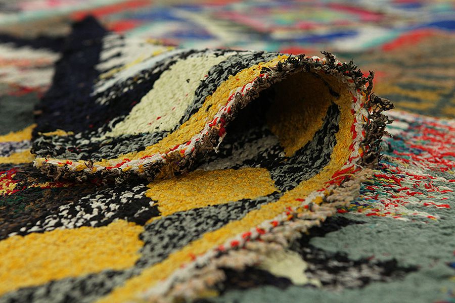 Die Teppichfarben ändern sich je nachdem von welcher Seite er betrachtet wird. Sie können den Teppich auf den folgenden Bildern aus verschiedenen Perspektiven betrachten: