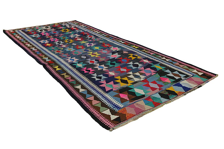 Dies ist ein spezieller orientalischer Webteppich ohne Flor, der dem Teppich mit Flor vorrausging. Sie werden vor allem von Nomaden in Persien, Afghanistan, der Türkei und verschiedenen Gebieten im Kaukasus hergestellt. Es handelt sich hier um Webarbeiten von nicht besonders großen Maßen, mit simpler Webart, ohne Flor, die typische geometrische Muster und üppige Farbkombinationen haben. Für die Fertigung der Teppiche werden natürliche Materialien verwendet, wie Wolle und manchmal wird für leichtere und dünnere Kelims auch Seide benutzt. Die Farben der Fäden werden aus Pflanzen und Metallen gewonnen, die zu den natürlichen, hübschen Farbtönen beitragen. Die langjährige Tradition der Kelims gibt es schon seit Jahrhunderten bei den Nomaden Zentralasiens. Sie sind vielseitig verwendbar und können als Teppiche auf dem Boden, als Möbelbedeckung oder als Wanddekoration verwendet werden. Der Name Kelim stammt von dem persischen Wort Gelim. Die Kurden nennen sie Berr-Teppiche. Die bekanntesten persischen Kelims sind die Sumakh-. Senneh-, Fars- und die Qashqai-Teppiche. Verschiedene Namen afghanischer Kelims sind Golbariasta, Maimane, Taimani, Maliki und andere. Viele Kelims werden auch an der Grenze zwischen Persien und Afghanistan von Balouch-Nomaden gewebt. Ihre typischen Farben sind dunkle Erdtöne.
