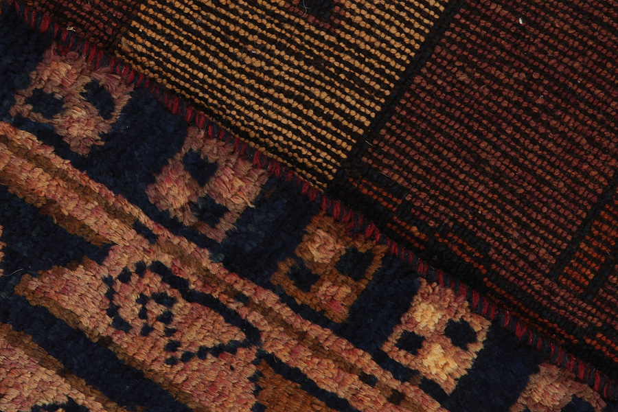 Abrash: Auf Grund des unterschiedlichen Wollfettgehalts und der unterschiedlichen Salzmenge während des Färbungsprozesses, hat die Wolle eine unterschiedliche Farbaufsaugfähigkeit. Vor dem Weben ist es nicht so sichtbar. Aber beim Weben entstehen Reihen mit unterschiedlichen Farbabstufungen der gleichen Farbe. Dies heißt Abrash und verdeutlicht die Natürlichkeit und die Originalität der Wolle, die mit keinen chemischen Mitteln behandelt wurde. Beispiele