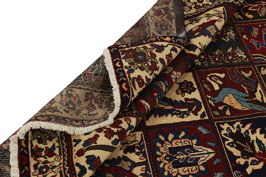 In den Bergen Zagros, westlich der Stadt Isfahan, um die Stadt Shahr-e-Kurd, leben die Nomaden Bakhtiar. Ihre Teppiche sind für ihr Muster mit den verschiedenen wiederkehrenden Quadraten, in denen Blumen oder Tiere abgebildet sind, bekannt. Aus diesem Grund wird dieses Muster als „Garten“ (Khesti) bezeichnet. Ihre Teppiche sind äußerst robust, dicht gewebt und sind aus hochwertiger persischer Wolle gefertigt. Die Wolle stammt von Schafen, die auf Hochebenen grasen. Die besten Bakhtiar Teppiche, die über die höchste Knotendichte verfügen, werden oft als Bibibaf-Teppiche bezeichnet. Außerdem sind auf vielen Mustern Einflüsse aus Isfahan-Teppichen zu sehen (Boldaji, Ferdan, Saman).