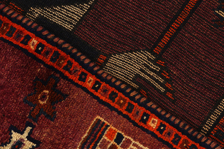 Abrash: Auf Grund des unterschiedlichen Wollfettgehalts und der unterschiedlichen Salzmenge während des Färbungsprozesses, hat die Wolle eine unterschiedliche Farbaufsaugfähigkeit. Vor dem Weben ist es nicht so sichtbar. Aber beim Weben entstehen Reihen mit unterschiedlichen Farbabstufungen der gleichen Farbe. Dies heißt Abrash und verdeutlicht die Natürlichkeit und die Originalität der Wolle, die mit keinen chemischen Mitteln behandelt wurde. Beispiele