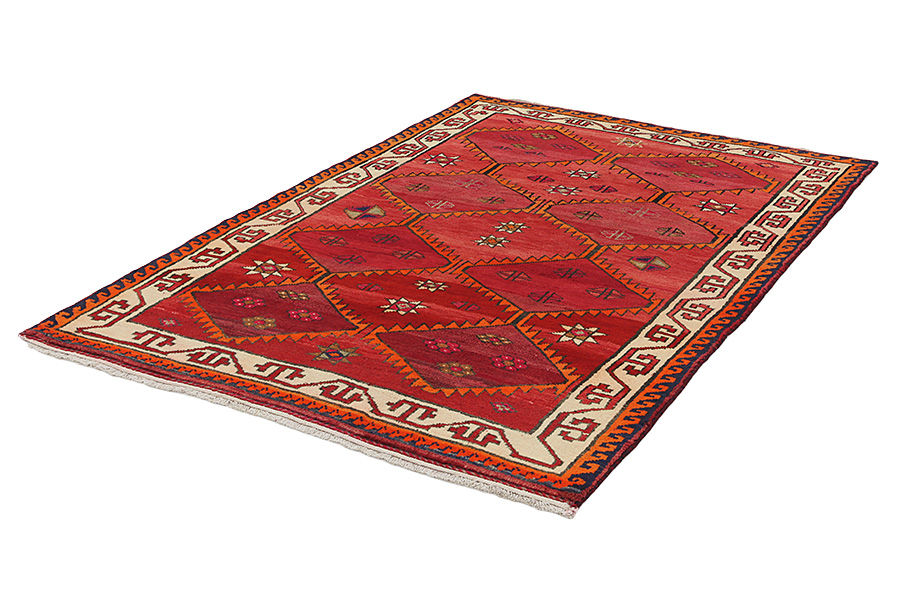 Abrash: Auf Grund des unterschiedlichen Wollfettgehalts und der unterschiedlichen Salzmenge während des Färbungsprozesses, hat die Wolle eine unterschiedliche Farbaufsaugfähigkeit. Vor dem Weben ist es nicht so sichtbar. Aber beim Weben entstehen Reihen mit unterschiedlichen Farbabstufungen der gleichen Farbe. Dies heißt Abrash und verdeutlicht die Natürlichkeit und die Originalität der Wolle, die mit keinen chemischen Mitteln behandelt wurde. Beispiele