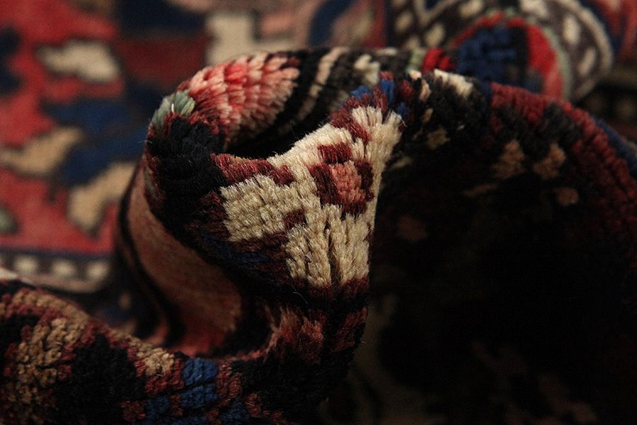 Abrash: Auf Grund des unterschiedlichen Wollfettgehalts und der unterschiedlichen Salzmenge während des Färbungsprozesses, hat die Wolle eine unterschiedliche Farbaufsaugfähigkeit. Vor dem Weben ist es nicht so sichtbar. Aber beim Weben entstehen Reihen mit unterschiedlichen Farbabstufungen der gleichen Farbe. Dies heißt Abrash und verdeutlicht die Natürlichkeit und die Originalität der Wolle, die mit keinen chemischen Mitteln behandelt wurde. Beispiele