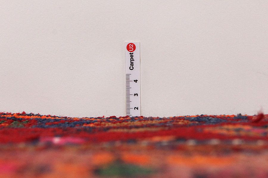Abrash: Auf Grund des unterschiedlichen Wollfettgehalts und der unterschiedlichen Salzmenge während des Färbungsprozesses, hat die Wolle eine unterschiedliche Farbaufsaugfähigkeit. Vor dem Weben ist es nicht so sichtbar. Aber beim Weben entstehen Reihen mit unterschiedlichen Farbabstufungen der gleichen Farbe. Dies heißt Abrash und verdeutlicht die Natürlichkeit und die Originalität der Wolle, die mit keinen chemischen Mitteln behandelt wurde. Beispiele
