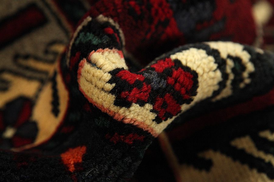 Abrash: Auf Grund des unterschiedlichen Wollfettgehalts und der unterschiedlichen Salzmenge während des Färbungsprozesses, hat die Wolle eine unterschiedliche Farbaufsaugfähigkeit. Vor dem Weben ist es nicht so sichtbar. Aber beim Weben entstehen Reihen mit unterschiedlichen Farbabstufungen der gleichen Farbe. Dies heißt Abrash und verdeutlicht die Natürlichkeit und die Originalität der Wolle, die mit keinen chemischen Mitteln behandelt wurde. Beispiele