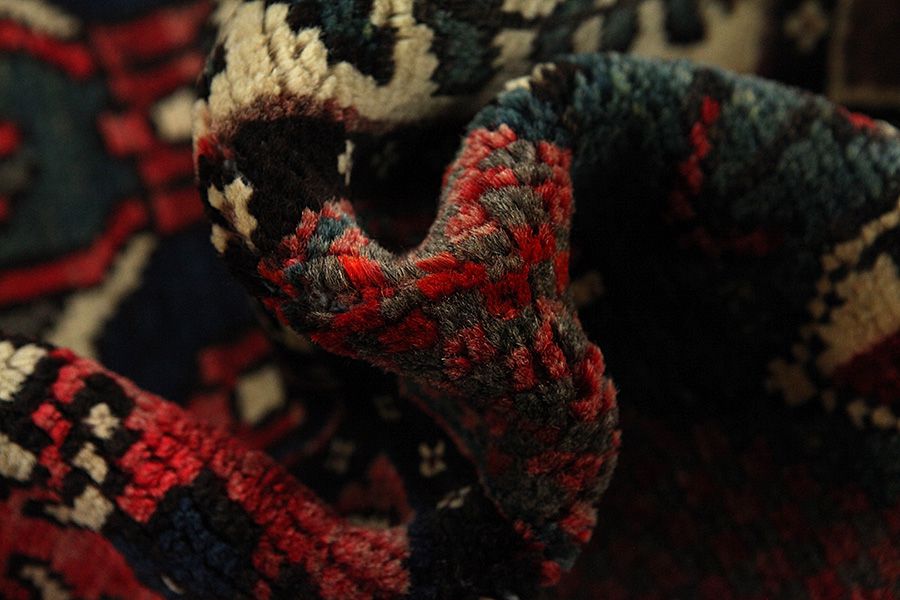 Abrash: Auf Grund des unterschiedlichen Wollfettgehalts und der unterschiedlichen Salzmenge während des Färbungsprozesses, hat die Wolle eine unterschiedliche Farbaufsaugfähigkeit. Vor dem Weben ist es nicht so sichtbar. Aber beim Weben entstehen Reihen mit unterschiedlichen Farbabstufungen der gleichen Farbe. Dies heißt Abrash und verdeutlicht die Natürlichkeit und die Originalität der Wolle, die mit keinen chemischen Mitteln behandelt wurde. Beispiele
