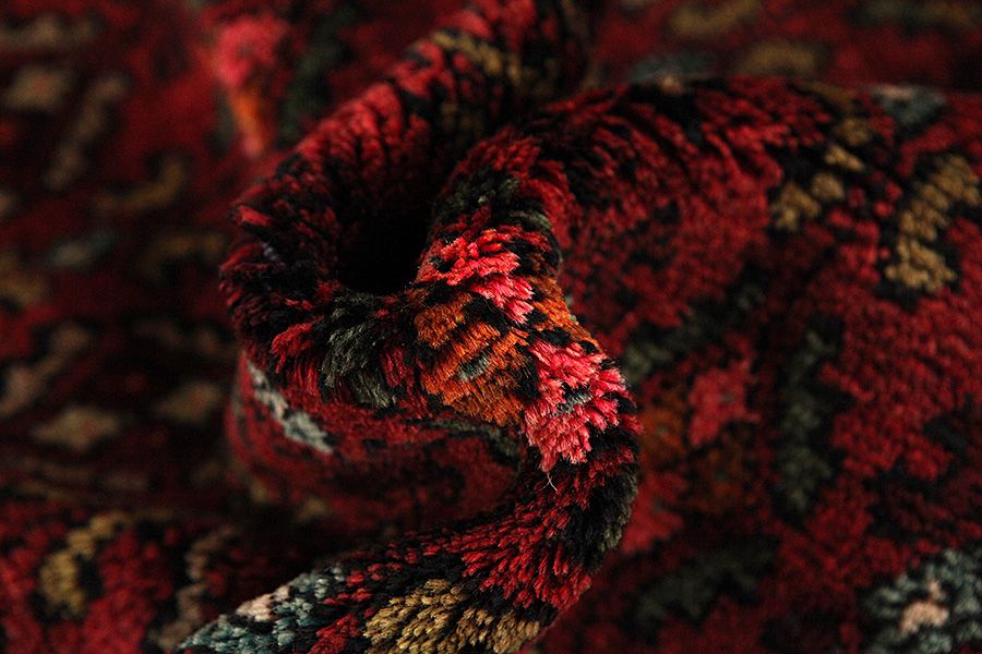 Abrash: Auf Grund des unterschiedlichen Wollfettgehalts und der unterschiedlichen Salzmenge während des Färbungsprozesses, hat die Wolle eine unterschiedliche Farbaufsaugfähigkeit. Vor dem Weben ist es nicht so sichtbar. Aber beim Weben entstehen Reihen mit unterschiedlichen Farbabstufungen der gleichen Farbe. Dies heißt Abrash und verdeutlicht die Natürlichkeit und die Originalität der Wolle, die mit keinen chemischen Mitteln behandelt wurde. Beispiele
