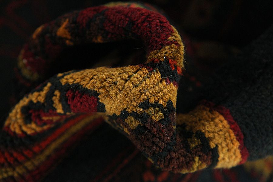 Abrash: Auf Grund des unterschiedlichen Wollfettgehalts und der unterschiedlichen Salzmenge während des Färbungsprozesses, hat die Wolle eine unterschiedliche Farbaufsaugfähigkeit. Vor dem Weben ist es nicht so sichtbar. Aber beim Weben entstehen Reihen mit unterschiedlichen Farbabstufungen der gleichen Farbe. Dies heißt Abrash und verdeutlicht die Natürlichkeit und die Originalität der Wolle, die mit keinen chemischen Mitteln behandelt wurde. Beispiele