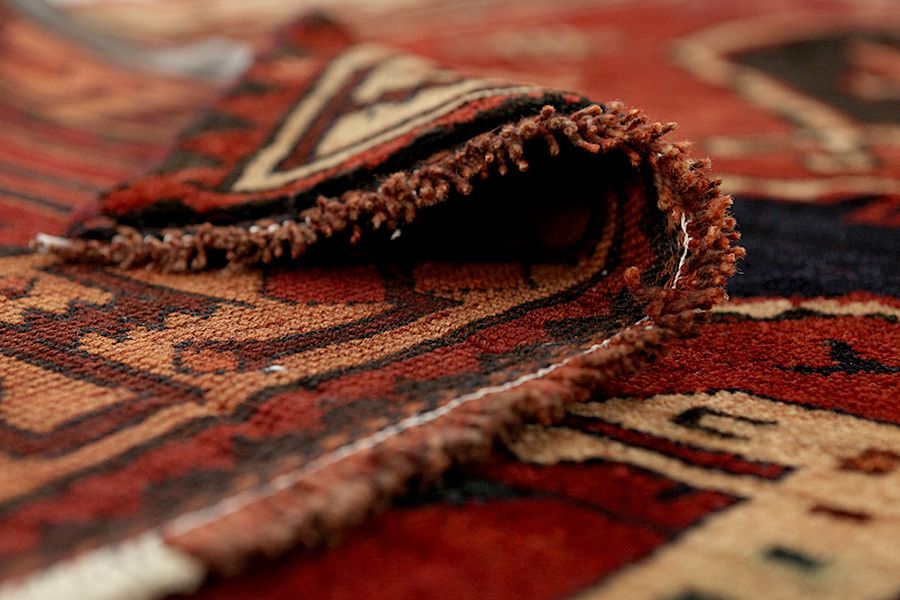 Abrash: Auf Grund des unterschiedlichen Wollfettgehalts und der unterschiedlichen Salzmenge während des Färbungsprozesses, hat die Wolle eine unterschiedliche Farbaufsaugfähigkeit. Vor dem Weben ist es nicht so sichtbar. Aber beim Weben entstehen Reihen mit unterschiedlichen Farbabstufungen der gleichen Farbe. Dies heißt Abrash und verdeutlicht die Natürlichkeit und die Originalität der Wolle, die mit keinen chemischen Mitteln behandelt wurde. Beispiele