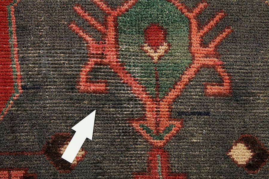 Abrash: Auf Grund des unterschiedlichen Wollfettgehalts und der unterschiedlichen Salzmenge während des Färbungsprozesses, hat die Wolle eine unterschiedliche Farbaufsaugfähigkeit. Vor dem Weben ist es nicht so sichtbar. Aber beim Weben entstehen Reihen mit unterschiedlichen Farbabstufungen der gleichen Farbe. Dies heißt Abrash und verdeutlicht die Natürlichkeit und die Originalität der Wolle, die mit keinen chemischen Mitteln behandelt wurde. Beispiele