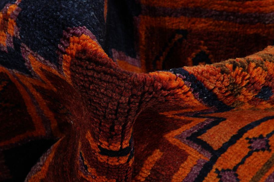 Abrash: Auf Grund des unterschiedlichen Wollfettgehalts und der unterschiedlichen Salzmenge während des Färbungsprozesses, hat die Wolle eine unterschiedliche Farbaufsaugfähigkeit. Vor dem Weben ist es nicht so sichtbar. Aber beim Weben entstehen Reihen mit unterschiedlichen Farbabstufungen der gleichen Farbe. Dies heißt Abrash und verdeutlicht die Natürlichkeit und die Originalität der Wolle, die mit keinen chemischen Mitteln behandelt wurde. Beispiele