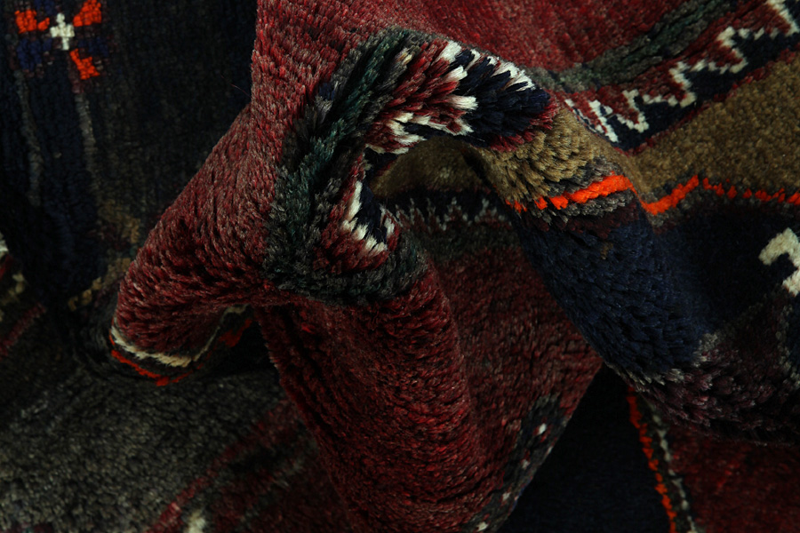 Abrash: Auf Grund des unterschiedlichen Wollfettgehalts und der unterschiedlichen Salzmenge während des Färbungsprozesses, hat die Wolle eine unterschiedliche Farbaufsaugfähigkeit. Vor dem Weben ist es nicht so sichtbar. Aber beim Weben entstehen Reihen mit unterschiedlichen Farbabstufungen der gleichen Farbe. Dies heißt Abrash und verdeutlicht die Natürlichkeit und die Originalität der Wolle, die mit keinen chemischen Mitteln behandelt wurde. Beispiele