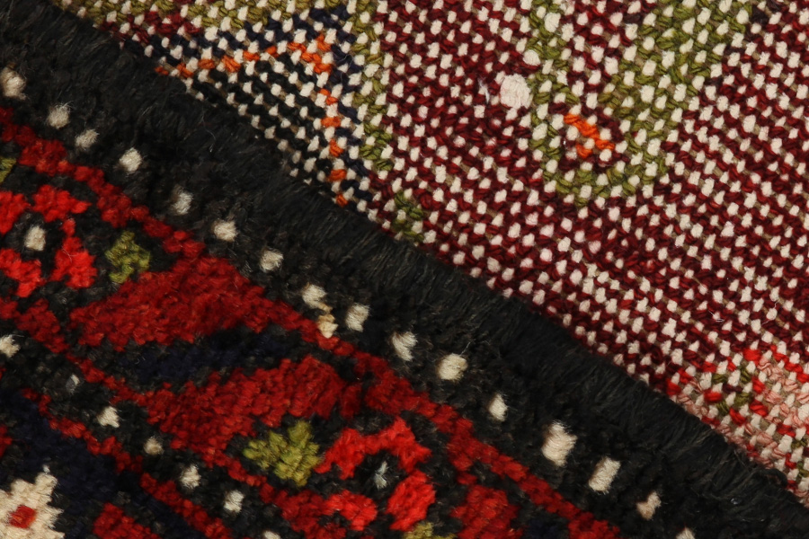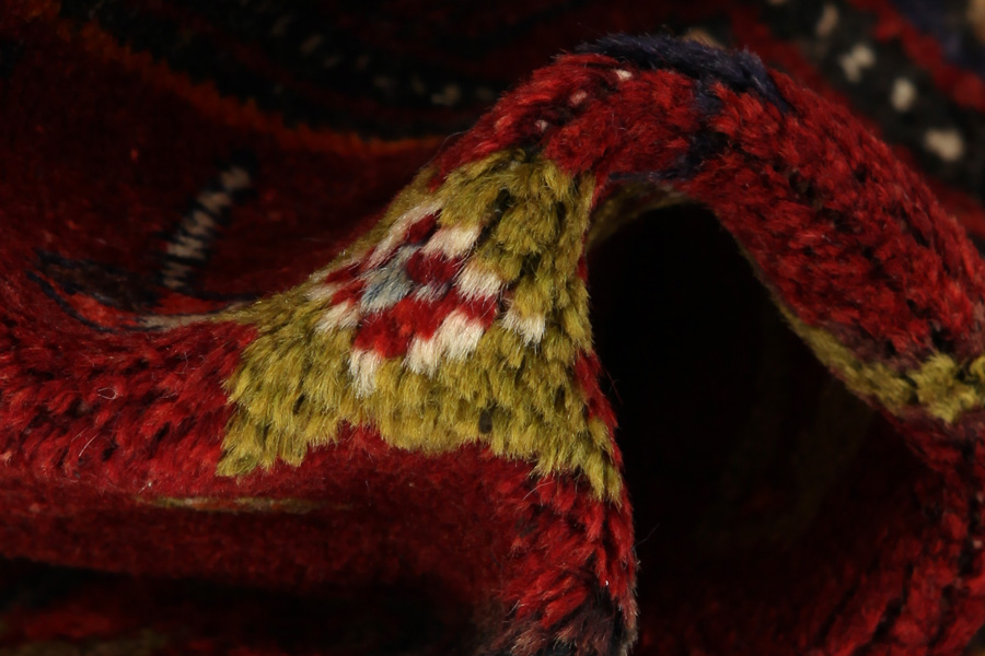 Abrash: Auf Grund des unterschiedlichen Wollfettgehalts und der unterschiedlichen Salzmenge während des Färbungsprozesses, hat die Wolle eine unterschiedliche Farbaufsaugfähigkeit. Vor dem Weben ist es nicht so sichtbar. Aber beim Weben entstehen Reihen mit unterschiedlichen Farbabstufungen der gleichen Farbe. Dies heißt Abrash und verdeutlicht die Natürlichkeit und die Originalität der Wolle, die mit keinen chemischen Mitteln behandelt wurde. Beispiele