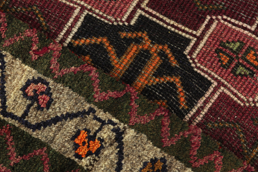 Abrash: Auf Grund des unterschiedlichen Wollfettgehalts und der unterschiedlichen Salzmenge während des Färbungsprozesses, hat die Wolle eine unterschiedliche Farbaufsaugfähigkeit. Vor dem Weben ist es nicht so sichtbar. Aber beim Weben entstehen Reihen mit unterschiedlichen Farbabstufungen der gleichen Farbe. Dies heißt Abrash und verdeutlicht die Natürlichkeit und die Originalität der Wolle, die mit keinen chemischen Mitteln behandelt wurde. Beispiele