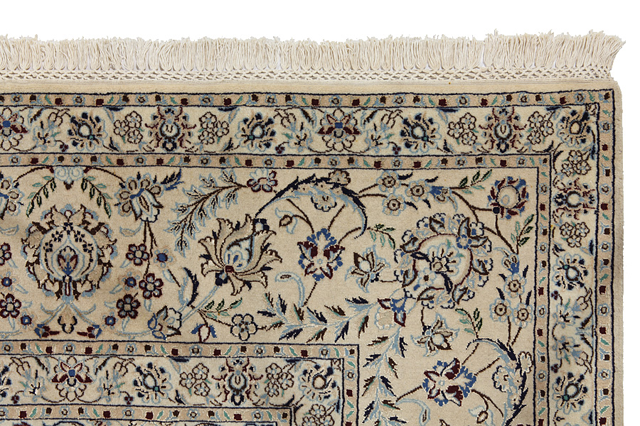 Die Nain Teppiche werden auch in den Gegenden in der Nähe und nicht nur in der Stadt Nain gefertigt. In den meisten Teppichen wird Baumwolle für die Kette verwendet. Die Kette besteht aus einer bestimmten Anzahl an Fäden, die als „La“ bezeichnet werden. Die Nain 6la Teppiche bestehen aus 6 Fäden (6la) und ihr Weben ist sehr dünn. Sie gelten als die elegantesten 6la der Qualität La.