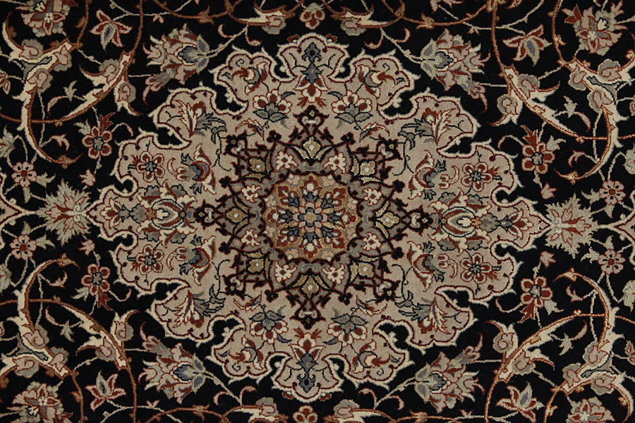 Im Zentrum Irans, inmitten des Zagros-Gebirges und der Wüste, liegt die Stadt Isfahan. Heute ist sie eine wichtige Industriestadt mit 1,2 Millionen Einwohnern. Architektonisch gesehen ist die Stadt ein Wunderwerk. Die alten Teppiche Isfahans haben im Gegensatz zu den neuen kein zentrales Medaillon. Die ganze Teppichfläche war voll von kunstvollen, geschwungenen Blumenranken und Palmetten. Die neuen Isfahan-Teppiche können nicht mit den alten Teppichen verglichen werden, die ausschließlich für Adlige hergestellt wurden. Die heutigen Isfahan Teppiche führen die Tradition fort. Sie sind dünn und werden kurz geschnitten, damit ihr Muster besser hervorgehoben wird. Bei der Knüpfarbeit wird außerdem Seide benutzt, um manche Stellen des Musters hervorzuheben, vor allem bei den Blumen. Die Kette ist entweder aus Seide oder aus Baumwolle.
