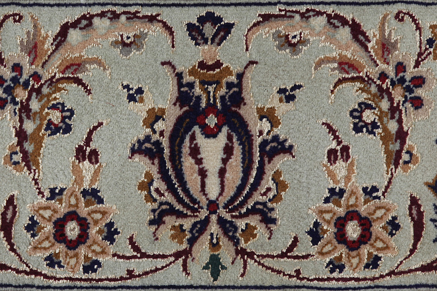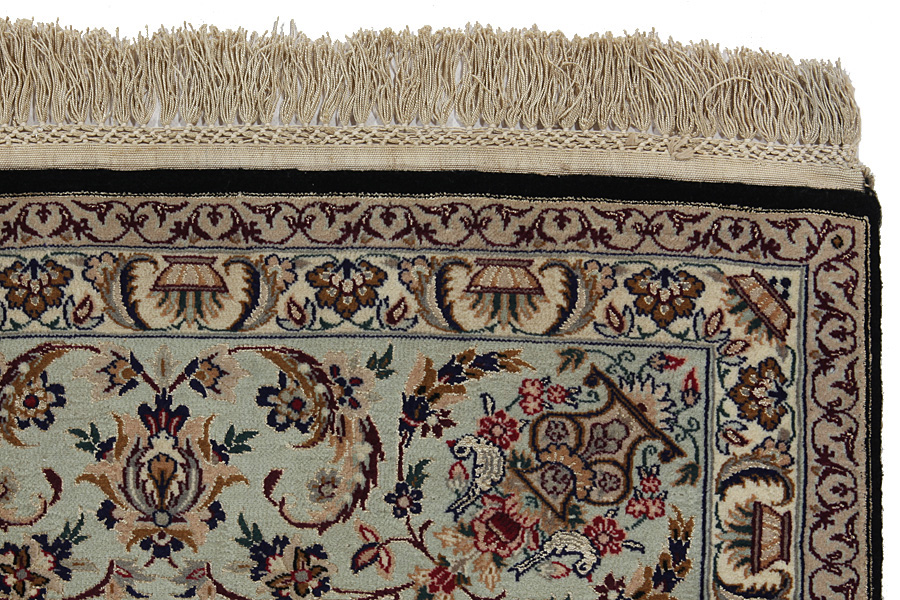 Im Zentrum Irans, inmitten des Zagros-Gebirges und der Wüste, liegt die Stadt Isfahan. Heute ist sie eine wichtige Industriestadt mit 1,2 Millionen Einwohnern. Architektonisch gesehen ist die Stadt ein Wunderwerk. Die alten Teppiche Isfahans haben im Gegensatz zu den neuen kein zentrales Medaillon. Die ganze Teppichfläche war voll von kunstvollen, geschwungenen Blumenranken und Palmetten. Die neuen Isfahan-Teppiche können nicht mit den alten Teppichen verglichen werden, die ausschließlich für Adlige hergestellt wurden. Die heutigen Isfahan Teppiche führen die Tradition fort. Sie sind dünn und werden kurz geschnitten, damit ihr Muster besser hervorgehoben wird. Bei der Knüpfarbeit wird außerdem Seide benutzt, um manche Stellen des Musters hervorzuheben, vor allem bei den Blumen. Die Kette ist entweder aus Seide oder aus Baumwolle.