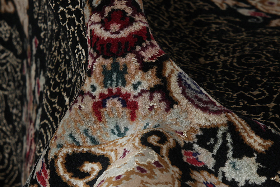 Die Teppichfarben ändern sich je nachdem von welcher Seite er betrachtet wird. Sie können den Teppich auf den folgenden Bildern aus verschiedenen Perspektiven betrachten: