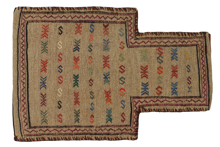 Diese Persischen handgeknüpften Satteltaschen werden von den Nomaden für den Eigengebrauch verwendet. Unterscheiden kann man zwischen Kelim-Satteltaschen und geknüpften Satteltaschen. Bei geknüpften Satteltaschen ist die Vorderseite entweder wie ein üblicher Teppich geknüpft oder oder man findet Mischtechniken. Die Seiten werden oft in Knüpftechnik hergestellt, der mittlere Teil in verschiedenen Webtechniken wie zB. Kelim oder Soumak. Die Farben, die für die Satteltaschen verwendet werden, sind Naturfarben und werden von den Nomaden selbst hergestellt. In diesen Satteltaschen wurden einst Güter des täglichen Bedarfs für Reisende auf Esel oder Pferderücken aufbewahrt. Ein entzückendes Kunstwerk, das Ihrem Zuhause eine einzigartige orientalische Atmosphäre bietet. Satteltaschen können mit Kissen gefüllt werden und als Sitzkissen, als Bodenkissen zB. vor Ihrem Kamin oder als Wanddekoration verwendet werden. Kleinere Satteltaschen können über einen Stuhl ode ein Sofa geworfen werden und als Zeitungsständer verwendet werden.