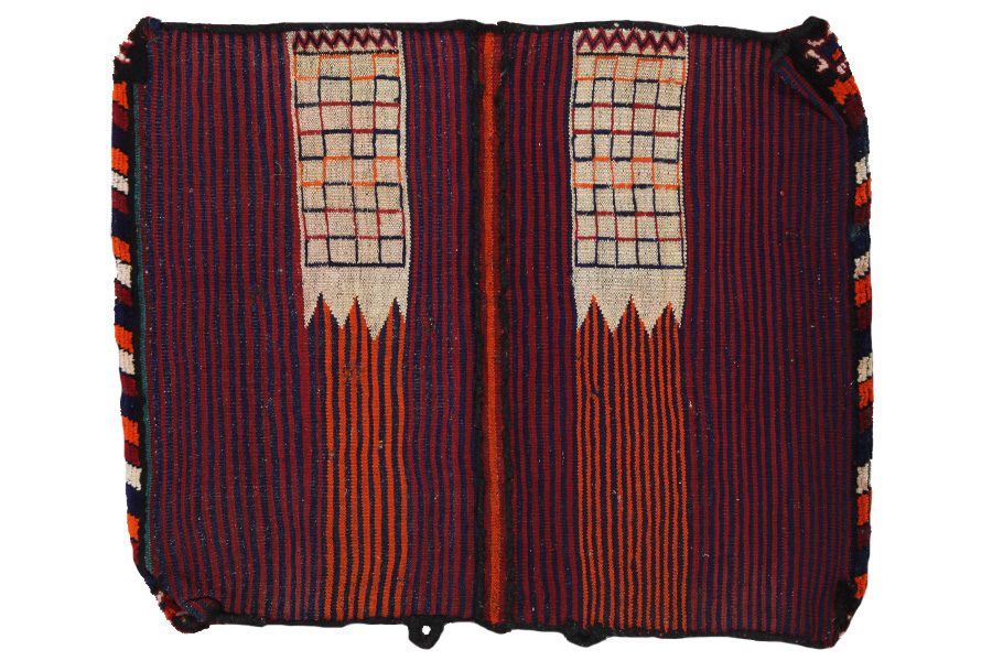 Diese Persischen handgeknüpften Satteltaschen werden von den Nomaden für den Eigengebrauch verwendet. Unterscheiden kann man zwischen Kelim-Satteltaschen und geknüpften Satteltaschen. Bei geknüpften Satteltaschen ist die Vorderseite entweder wie ein üblicher Teppich geknüpft oder oder man findet Mischtechniken. Die Seiten werden oft in Knüpftechnik hergestellt, der mittlere Teil in verschiedenen Webtechniken wie zB. Kelim oder Soumak. Die Farben, die für die Satteltaschen verwendet werden, sind Naturfarben und werden von den Nomaden selbst hergestellt. In diesen Satteltaschen wurden einst Güter des täglichen Bedarfs für Reisende auf Esel oder Pferderücken aufbewahrt. Ein entzückendes Kunstwerk, das Ihrem Zuhause eine einzigartige orientalische Atmosphäre bietet. Satteltaschen können mit Kissen gefüllt werden und als Sitzkissen, als Bodenkissen zB. vor Ihrem Kamin oder als Wanddekoration verwendet werden. Kleinere Satteltaschen können über einen Stuhl ode ein Sofa geworfen werden und als Zeitungsständer verwendet werden.