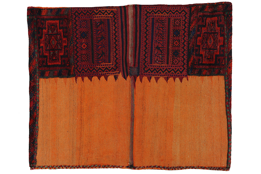 Diese Persischen handgeknüpften Satteltaschen werden von den Nomaden für den Eigengebrauch verwendet. Unterscheiden kann man zwischen Kelim-Satteltaschen und geknüpften Satteltaschen. Bei geknüpften Satteltaschen ist die Vorderseite entweder wie ein üblicher Teppich geknüpft oder oder man findet Mischtechniken. Die Seiten werden oft in Knüpftechnik hergestellt, der mittlere Teil in verschiedenen Webtechniken wie zB. Kelim oder Soumak. Die Farben, die für die Satteltaschen verwendet werden, sind Naturfarben und werden von den Nomaden selbst hergestellt. In diesen Satteltaschen wurden einst Güter des täglichen Bedarfs für Reisende auf Esel oder Pferderücken aufbewahrt. Ein entzückendes Kunstwerk, das Ihrem Zuhause eine einzigartige orientalische Atmosphäre bietet. Satteltaschen können mit Kissen gefüllt werden und als Sitzkissen, als Bodenkissen zB. vor Ihrem Kamin oder als Wanddekoration verwendet werden. Kleinere Satteltaschen können über einen Stuhl ode ein Sofa geworfen werden und als Zeitungsständer verwendet werden.