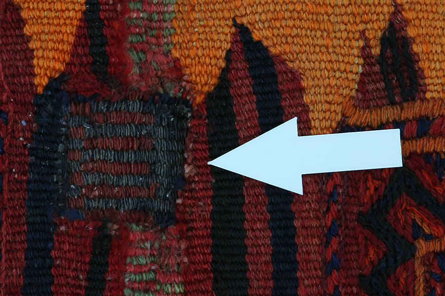 Abrash: Auf Grund des unterschiedlichen Wollfettgehalts und der unterschiedlichen Salzmenge während des Färbungsprozesses, hat die Wolle eine unterschiedliche Farbaufsaugfähigkeit. Vor dem Weben ist es nicht so sichtbar. Aber beim Weben entstehen Reihen mit unterschiedlichen Farbabstufungen der gleichen Farbe. Dies heißt Abrash und verdeutlicht die Natürlichkeit und die Originalität der Wolle, die mit keinen chemischen Mitteln behandelt wurde. Beispiele