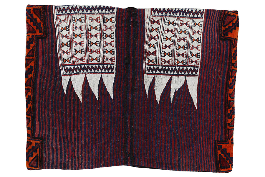 Diese Persischen handgeknüpften Satteltaschen werden von den Nomaden für den Eigengebrauch verwendet. Unterscheiden kann man zwischen Kelim-Satteltaschen und geknüpften Satteltaschen. Bei geknüpften Satteltaschen ist die Vorderseite entweder wie ein üblicher Teppich geknüpft oder oder man findet Mischtechniken. Die Seiten werden oft in Knüpftechnik hergestellt, der mittlere Teil in verschiedenen Webtechniken wie zB. Kelim oder Soumak. Die Farben, die für die Satteltaschen verwendet werden, sind Naturfarben und werden von den Nomaden selbst hergestellt. In diesen Satteltaschen wurden einst Güter des täglichen Bedarfs für Reisende auf Esel oder Pferderücken aufbewahrt. Ein entzückendes Kunstwerk, das Ihrem Zuhause eine einzigartige orientalische Atmosphäre bietet. Satteltaschen können mit Kissen gefüllt werden und als Sitzkissen, als Bodenkissen zB. vor Ihrem Kamin oder als Wanddekoration verwendet werden. Kleinere Satteltaschen können über einen Stuhl ode ein Sofa geworfen werden und als Zeitungsständer verwendet werden.