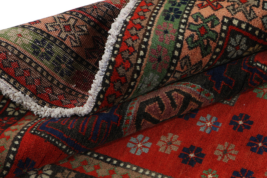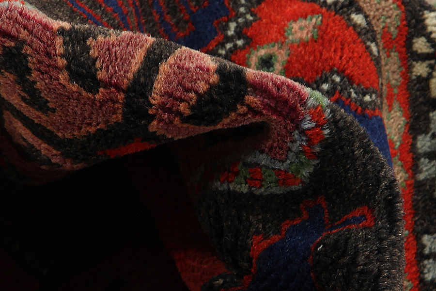 Abrash: Auf Grund des unterschiedlichen Wollfettgehalts und der unterschiedlichen Salzmenge während des Färbungsprozesses, hat die Wolle eine unterschiedliche Farbaufsaugfähigkeit. Vor dem Weben ist es nicht so sichtbar. Aber beim Weben entstehen Reihen mit unterschiedlichen Farbabstufungen der gleichen Farbe. Dies heißt Abrash und verdeutlicht die Natürlichkeit und die Originalität der Wolle, die mit keinen chemischen Mitteln behandelt wurde. Beispiele