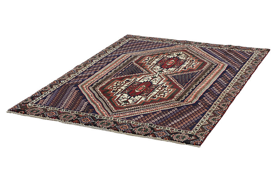 Im südöstlichen Iran, in der Gegend der Stadt Kirman, lebt der Stamm der Afsharen. Ihre Teppiche gehören zu den besten Exemplaren der nomadischen Webkunst. Ihre primitiven und hübschen geometrischen Muster, meist in blauen und roten Farbtönen, sind einzigartig. Die Afshar Teppiche sind auf dem Markt auch unter dem Namen Sirdjan bekannt. Die Stadt Sirdjan ist ein Sammelort für Teppiche der Afsharen und befindet sich südöstlich der Provinz Kirman.