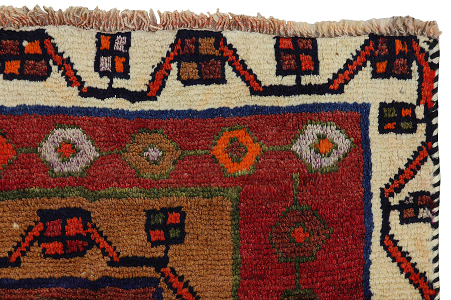 Abrash: Auf Grund des unterschiedlichen Wollfettgehalts und der unterschiedlichen Salzmenge während des Färbungsprozesses, hat die Wolle eine unterschiedliche Farbaufsaugfähigkeit. Vor dem Weben ist es nicht so sichtbar. Aber beim Weben entstehen Reihen mit unterschiedlichen Farbabstufungen der gleichen Farbe. Dies heißt Abrash und verdeutlicht die Natürlichkeit und die Originalität der Wolle, die mit keinen chemischen Mitteln behandelt wurde. Beispiele