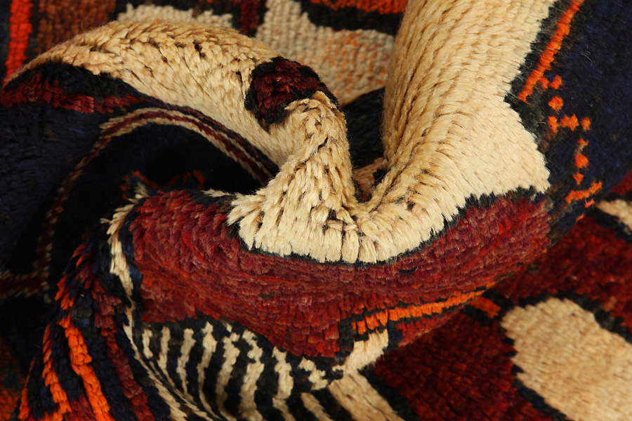 Abrash: Auf Grund des unterschiedlichen Wollfettgehalts und der unterschiedlichen Salzmenge während des Färbungsprozesses, hat die Wolle eine unterschiedliche Farbaufsaugfähigkeit. Vor dem Weben ist es nicht so sichtbar. Aber beim Weben entstehen Reihen mit unterschiedlichen Farbabstufungen der gleichen Farbe. Dies heißt Abrash und verdeutlicht die Natürlichkeit und die Originalität der Wolle, die mit keinen chemischen Mitteln behandelt wurde. Beispiele