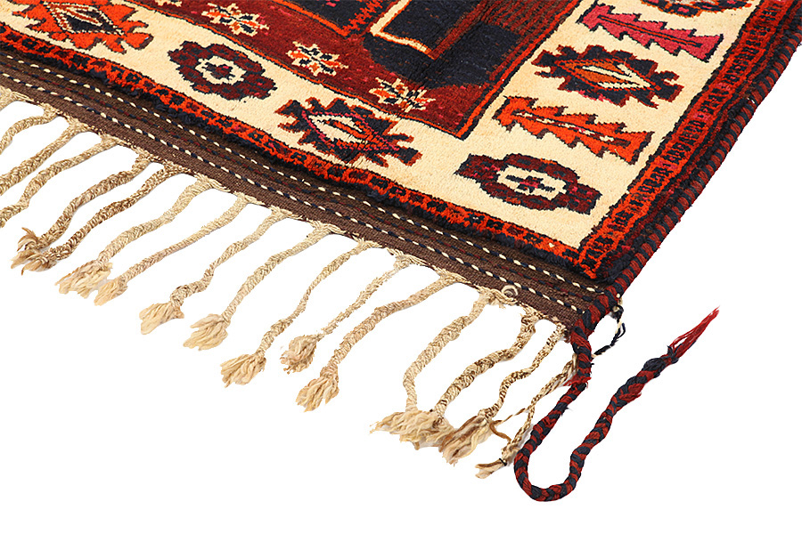 Gewebter Teil an einer oder auf beiden Teppichseiten: Die Nomaden weben an manchen Teppichen an der einen oder auch an beiden Breitseiten Fransen auf einen schmalen gewebten Teil des Teppichs, oder sie flechten die Fransen kunstvoll zu kleinen Zöpfen. Dies ist eine Technik von verschiedenen Webern, um eine größere Widerstandsfähigkeit oder einfach um ihre Kunstfertigkeit zu zeigen. Beispiele