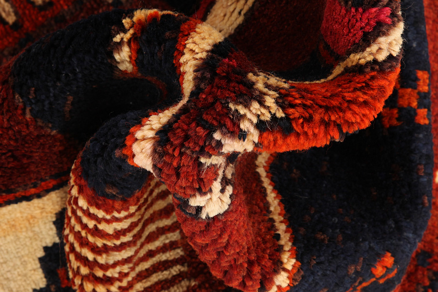 Abrash: Auf Grund des unterschiedlichen Wollfettgehalts und der unterschiedlichen Salzmenge während des Färbungsprozesses, hat die Wolle eine unterschiedliche Farbaufsaugfähigkeit. Vor dem Weben ist es nicht so sichtbar. Aber beim Weben entstehen Reihen mit unterschiedlichen Farbabstufungen der gleichen Farbe. Dies heißt Abrash und verdeutlicht die Natürlichkeit und die Originalität der Wolle, die mit keinen chemischen Mitteln behandelt wurde. Beispiele