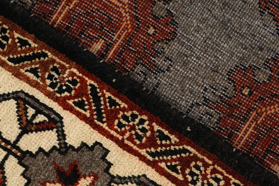 Abrash: Auf Grund des unterschiedlichen Wollfettgehalts und der unterschiedlichen Salzmenge während des Färbungsprozesses, hat die Wolle eine unterschiedliche Farbaufsaugfähigkeit. Vor dem Weben ist es nicht so sichtbar. Aber beim Weben entstehen Reihen mit unterschiedlichen Farbabstufungen der gleichen Farbe. Dies heißt Abrash und verdeutlicht die Natürlichkeit und die Originalität der Wolle, die mit keinen chemischen Mitteln behandelt wurde. Beispiele
